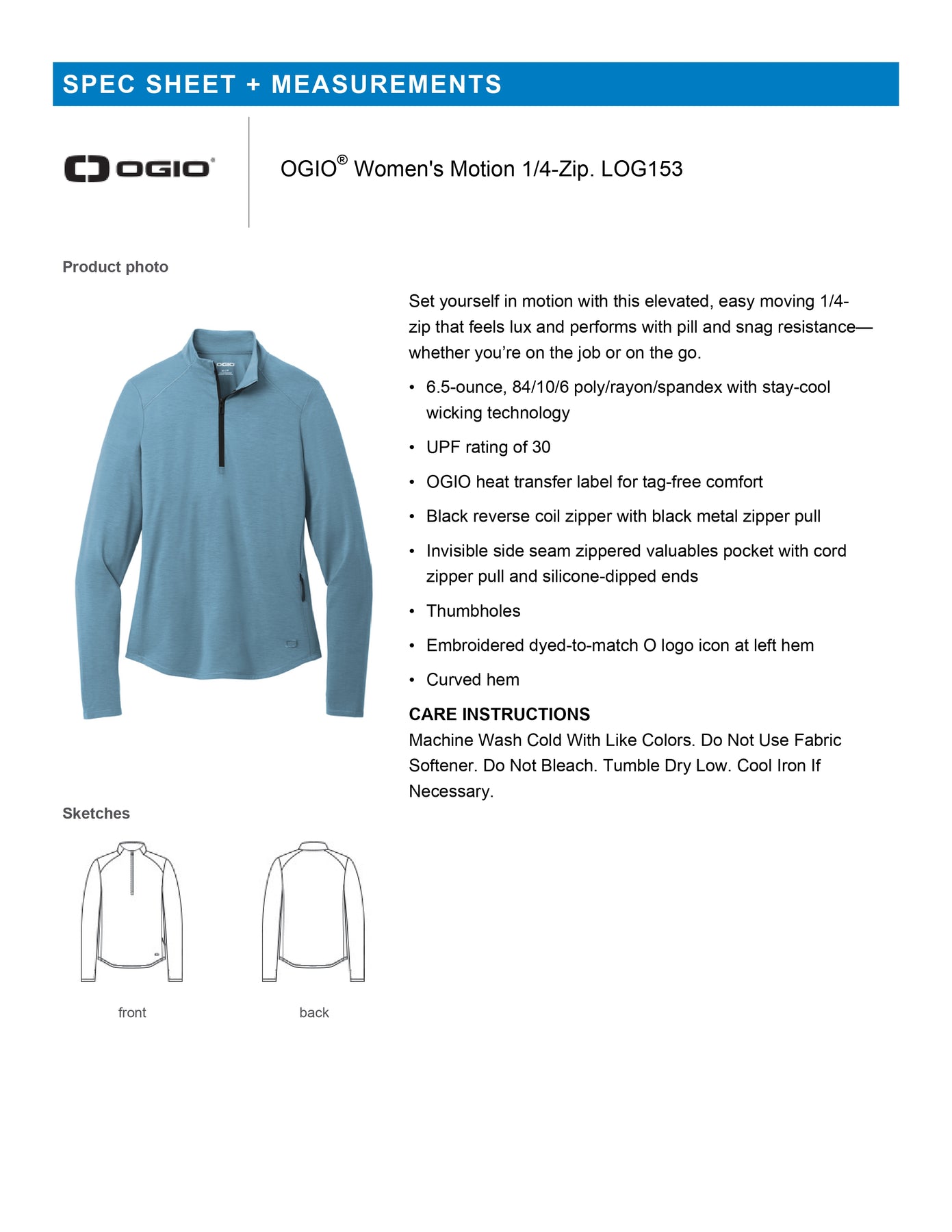 - OGIO heat transfer label for tag-free comfort